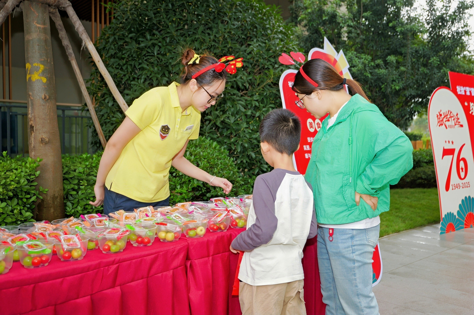 香气四溢的美食区无疑是活动现场最受欢迎的角落之一。志愿者们将一份份象征团圆的月饼水果送到居民手中,大家边品尝边交流,分享着节日的快乐,社区大家庭的温暖在舌尖上流淌。