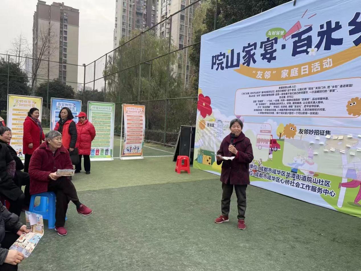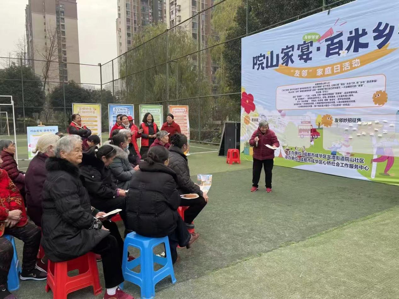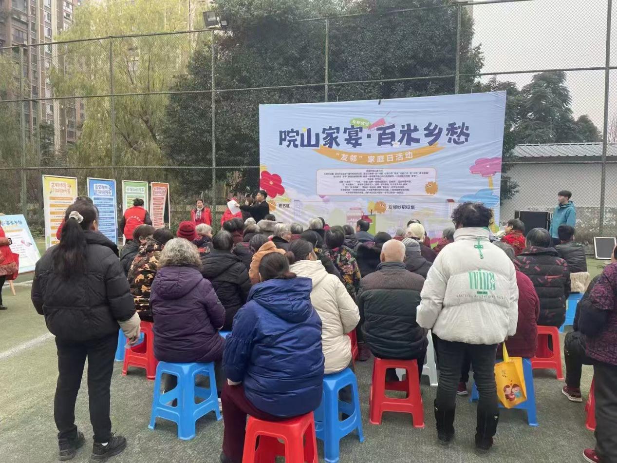 为响应现代社区面临的“邻里陌生化”挑战,构建更具温度与凝聚力的生活共同体,2025年12月26日下午,由龙潭街道院山社区主办、成华区心桥社会工作服务中心承办的“院山家宴·百米乡愁”--“友邻”家庭日活动在社区萌特乐幼儿园提供的免费场地成功举办。活动以“家宴”为载体,以“百米乡愁”为情感纽带,通过多元参与和资源整合,为居民搭建了互动交流、共创共享的社区平台。